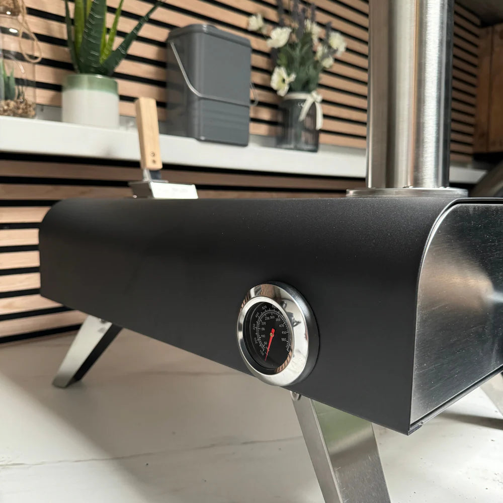 Upplifðu stökkar og bragðmiklar pizzur með Bella pizzaofninum, sem nær yfir 400 °C á örfáum mínútum. Eldaðu eins og atvinnumaður – heima, í bústaðnum eða í garðinum.